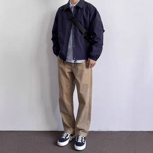 クロスボーダーメンズ日本のレトロルーズカジュアルラペルコーチジャケット多用途無地シンプルな春と秋の作業服Yitai