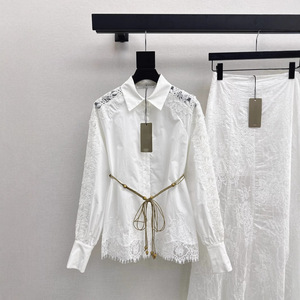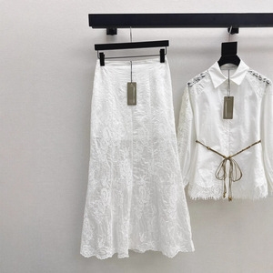 深センNanyou新25フレンチエレガント長袖中空刺繍レーススプライシングシャツフィッシュテールスカートスーツ