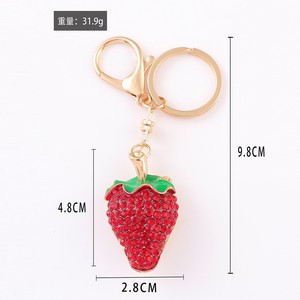Amazon クリエイティブメタルラインストーンイチゴキーホルダー車のバックパックキーペンダント小さなギフトアクセサリーキーチェーン