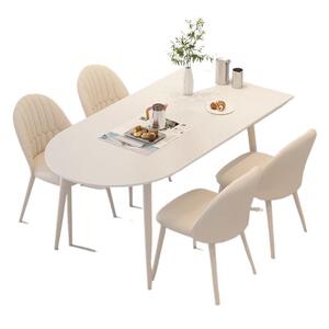 YW ロックボードダイニングテーブル小さなアパートクリームスタイルのダイニングテーブルと椅子の組み合わせライト高級モダンシンプルな楕円形のダイニングテーブル