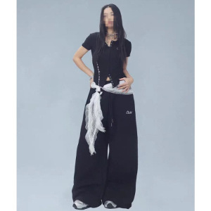 ヨーロッパとアメリカのクロスボーダー Amazon AliExpress ハイウエスト巾着ルーズホットガールスタイルジャズダンスヒップホップスポーツパンツ女性用