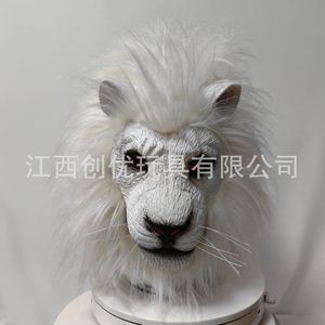 新しいぬいぐるみ白ライオンマスクハロウィンラテックス動物ヘッドギアコスプレダンスパーティー面白い小道具