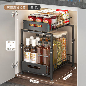 キャビネットシンク下収納ラックキッチンカウンタートップ高さ調節可能な収納ラック雑貨調味料ボトルと瓶の整理ラッククロスボーダー