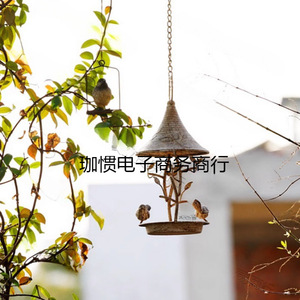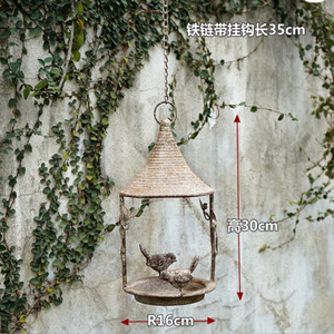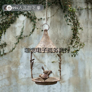 送料無料、アンティーク加工の庭園用吊り下げバスケット、アメリカンカントリー風アイアン製吊り下げ式鳥の餌箱、レトロな別荘のバルコニー用