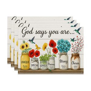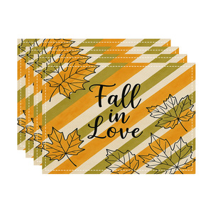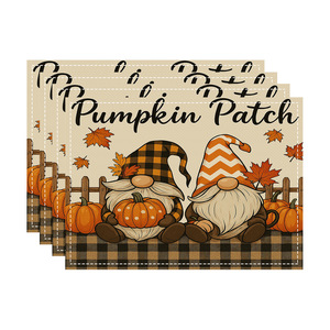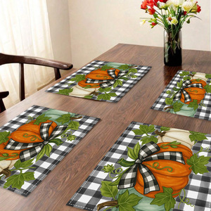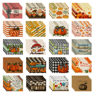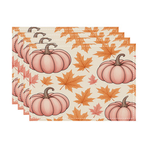 2025 感謝祭カボチャカエデの葉七面鳥秋リネンプリントプレースマットコースタールーム装飾断熱テーブルマット
