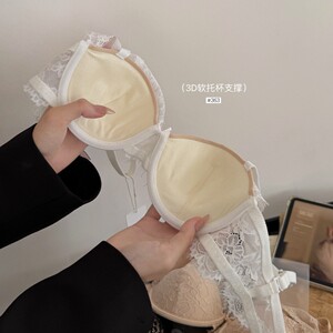 363 # ディープVショールレースブラジャー、軽くて高級感のあるフレンチメッシュ、小胸プッシュアップ、たるみ防止、ソフトワイヤー調整ブラジャー