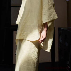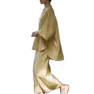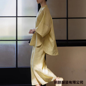 スーツ 文学的な綿と麻のスーツ、外出用のゆったりとしたスーツ