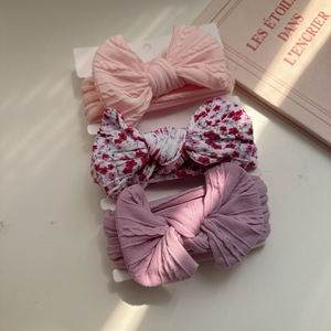 Amazon 新製品クロスボーダーベビーナイロン帽子子供用リボンヘッドバンドベビーカフ保護 3 点セット