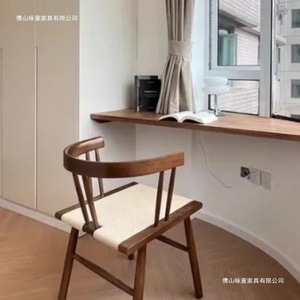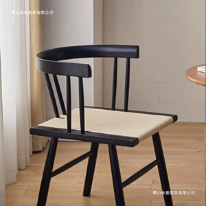 简约现代实木绳编椅复古新中式民宿北欧咖啡厅靠背椅子餐椅草座椅