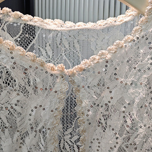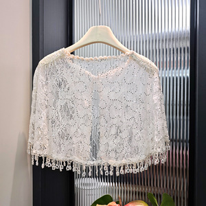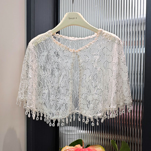 マントスパンコールネットレッドチャイナドレスショール夏の女性のアウターウェアとスカート日焼け止めカーディガンレースショートトップ