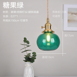 真鍮ガラスシャンデリア北欧レトロ B&B バーレストランベッドサイドランプクリエイティブパーソナライズされたカフェ寝室ランプ
