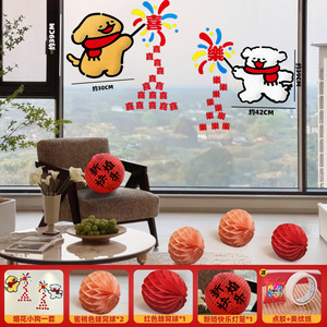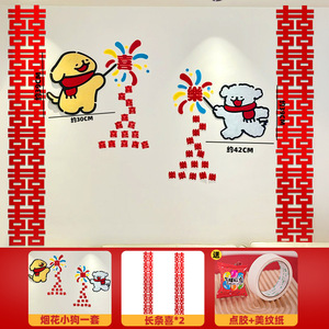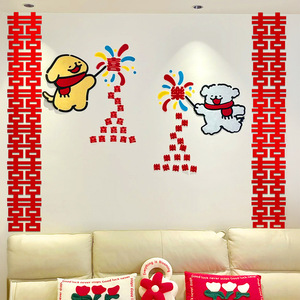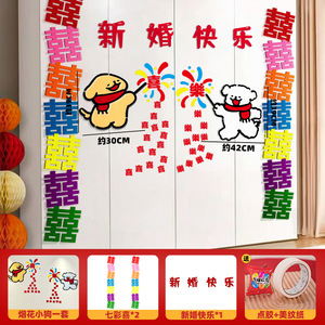 結婚式のリビングルームドーパミンライン子犬ハッピー言葉ステッカーテレビ背景壁装飾結婚式の部屋の雰囲気アレンジメント
