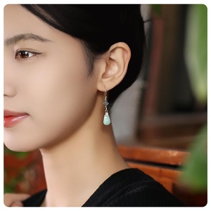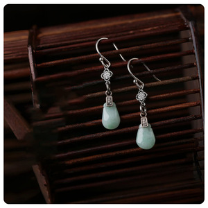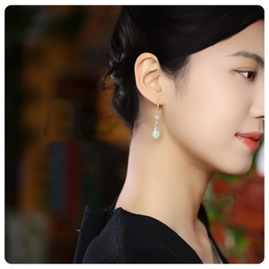 新しい中国風のレトロなBiyuマネーバッグ、小さなアンティークスタイルのイヤリング、チャイナドレスイヤーフック付きグリーンナショナルスタイルイヤリング、女性用イヤリング