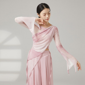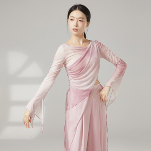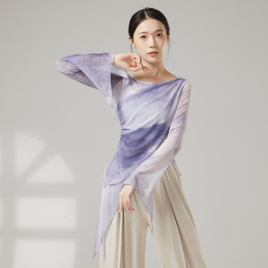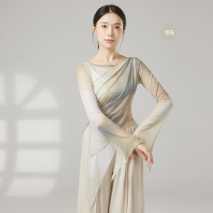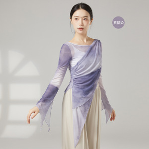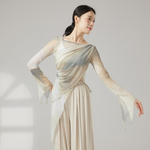 クラシックダンスボディトレーニング服、エレガントなガーゼ服、女性のグラデーションカラーのブルーミングボディダンス服、エスニックパフォーマンス服