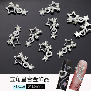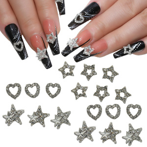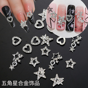 国境を越えたホットセールスターペンダントネイルアート合金ジュエリーラブ五芒星ダイヤモンドジュエリー立体ネイルアクセサリー卸売