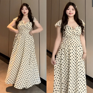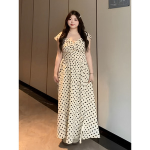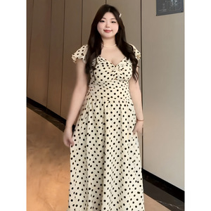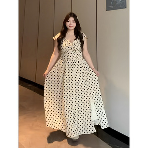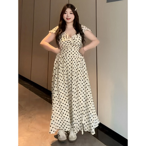 プラスサイズファットmm純粋な欲望スタイルセクシーな水玉模様のVネックドレス女性の夏スリムフィットウエスト気質ロングスカート