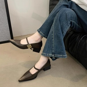 フレンチ太ヒールブラックメリージェーンレザーシューズ婦人靴2025春秋冬新作ポインテッドトゥシングルシューズイブニングシューズ