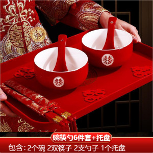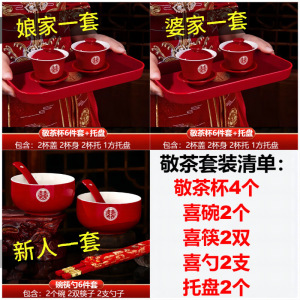 结婚用品改口敬茶杯套装一对喜碗筷杯子婚礼红色茶具敬酒陪嫁大全