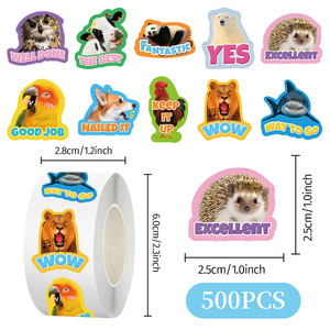 かわいい動物のご褒美ステッカーA [500枚/巻]