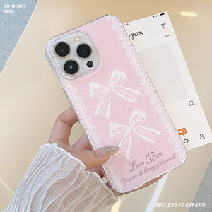 Apple 16PM かわいい 13 携帯電話ケース iphone15pro に適した二層 IMD レースリボンガールズパウダー