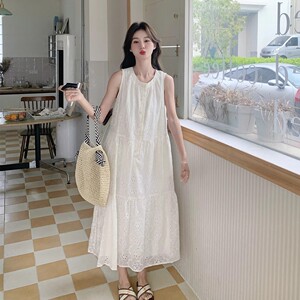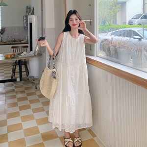 オフホワイトのノースリーブ中空小香風ドレス 2025 新しい女性の夏の美しい超人気の気質ジャカードロングドレス女性用