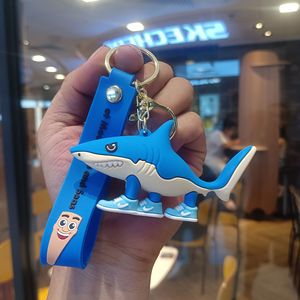 クリエイティブ漫画山と海の経典キーホルダーかわいい木の棒人間サメ海洋生物キーホルダーバッグペンダント卸売