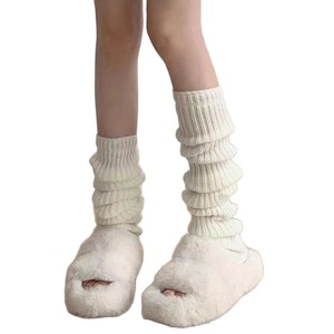 新しいニットJKソックス、女性用白カーフソックス、秋冬用暖かいパイルソックス、整形ソックス卸売