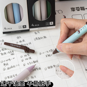 TacoTaco プレスゲルペン インス風 高見え速乾 滑らか 学生用 黒水性ペン 0.5 ブラシペン