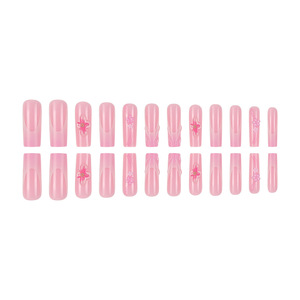 ガールブラッシュグラデーションフレンチ立体ストライプアイスフラワーゴールデンビーンヨーロッパとアメリカのインスタイル取り外し可能なマニキュアピース24個