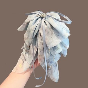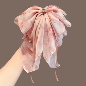 妖精のような多層花柄リボンポニーテールクリップ、ファッショナブルでエレガントで甘いリボンクリップ、ピンクの多用途サメヘアクリップ