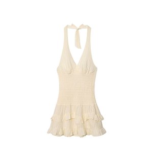 ZARZ 自家製ヨーロッパとアメリカンスタイルの新しい女性の V ネックホルターネックノースリーブバックレスフリルミディドレス