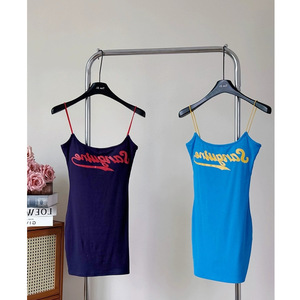小柄な女性向けのスリムなレトロサスペンダードレス、夏のプリントヒップカバーショートスカート、新しいアメリカンスタイルのウエストデザイン