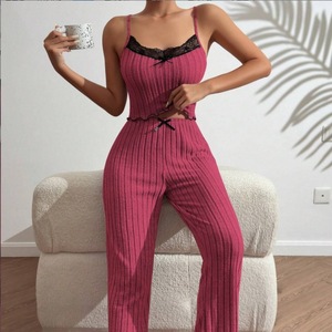 ヨーロッパとアメリカの国境を越えた売れ筋ホームウェア、ピットストリップラブキャミソールパジャマ、女性用ウェアラブルパンツツーピーススーツ