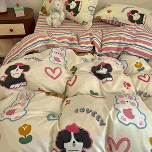 シンプルで絶妙なラブレッドクラスAウォッシュコットン寝具4点セット学生寮シングル3点セット