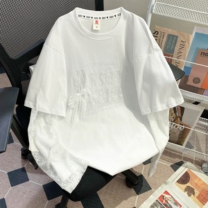 特別オファー [リアルショット 40番手双糸純綿 210g] 刺繍スパンコール 特大サイズ 150kg メッシュ半袖Tシャツ