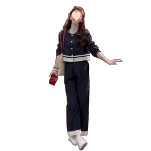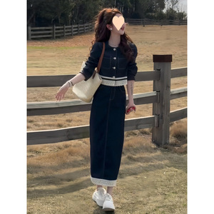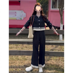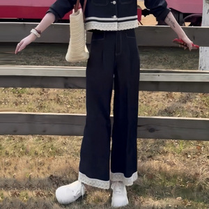 时尚减龄套装女春季新款法式蕾丝花边拼接外套显瘦阔腿裤两件套潮