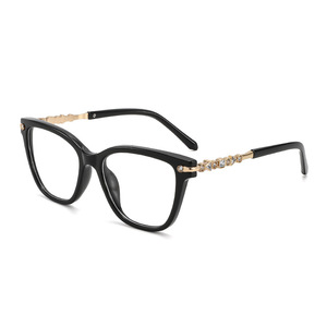 2371メガネフレーム 無地黒フレーム パール付き 度付きレンズ対応 平面レンズメガネフレーム 男女兼用 Amazon人気商品