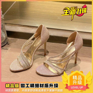 セレブフレンチハイヒールスティレットヒールラインストーンセクシーな新スタイル2025夏の新スタイルカラーダイヤモンドニッチデザインサンダル
