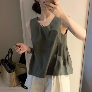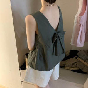 2023 新しい夏のラウンドネック通勤スリムノースリーブベスト韓国スタイルのリボンシックなバックレスデザイントップ