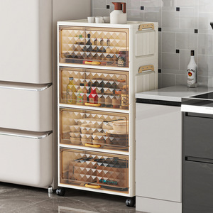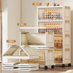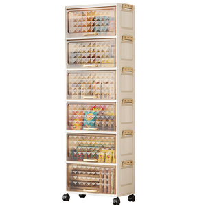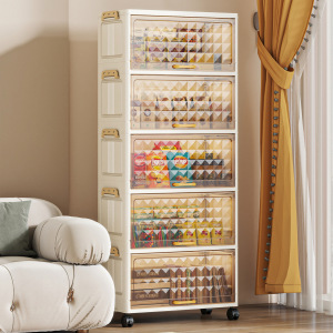 クロスボーダー透明フリップトップ折りたたみ収納キャビネット家庭用厚みのあるPP取り付け不要の収納キャビネットベッドサイド5つの引き出し収納キャビネット