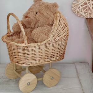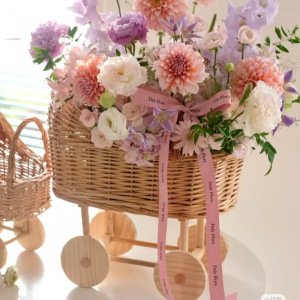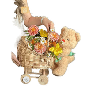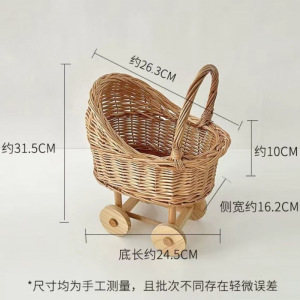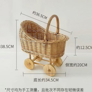 籐トロリーベビーカゴ型ペットベビーカーギフトボックスフラワーバスケットマタニティ装飾プルメリアバスケット