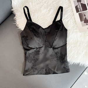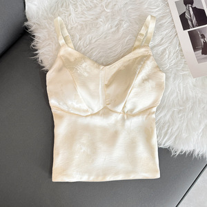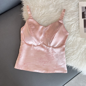 サテンジャカード新中国風サスペンダーレディース胸パッド付き美しい背中夏インナーベスト外国風痩身下着