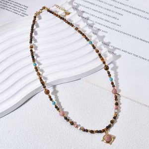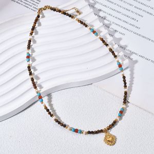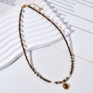 ボヘミアドーパミンタイガーアイ天然石ビーズネックレスメイラードスタイル多用途ホリデースタイル鎖骨チェーン女性用