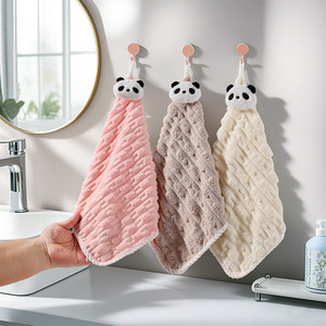 かわいいハンギングハンドタオルコーラルベルベット生理用ナプキンキッチン吸収性小さな正方形タオル子供用小さなタオルハンドタオル在庫あり