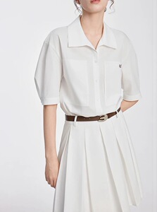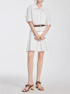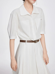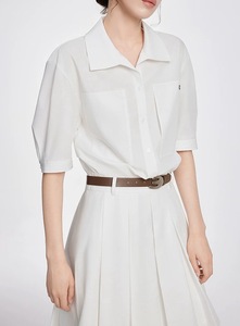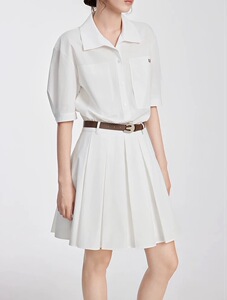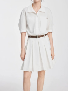ELLE ホワイト通勤スタイルシャツドレス女性のための 2025 夏の新リヨセルテンセルプリーツスカート