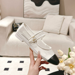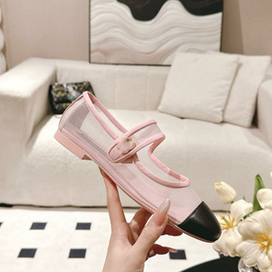 2025夏季新款真皮小香风网纱拼接一字带玛丽珍鞋平底芭蕾舞鞋单鞋