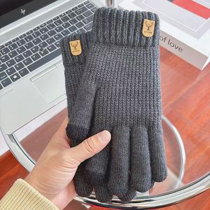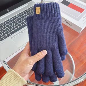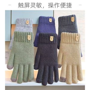 国境を越えた新しいメンズタッチスクリーン手袋、暖かく防寒性、ベルベットの厚みのあるウールニットの5本指サイクリング卸売