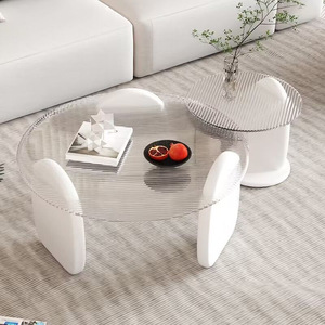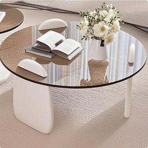 工場直販小型強化ガラスリビングルームラウンドコーヒーテーブル組み合わせオフィスライト高級ティーテーブルソファサイドテーブル