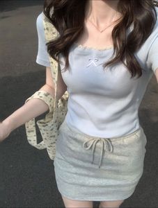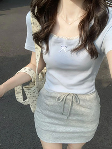 女性用ボトムス付き多用途リボンレース半袖Tシャツ