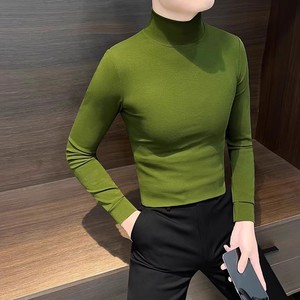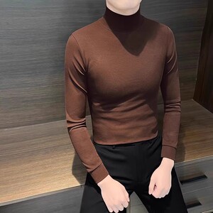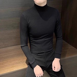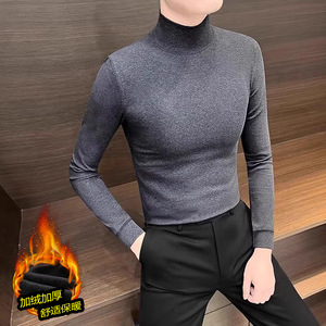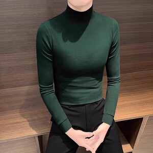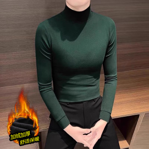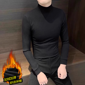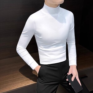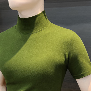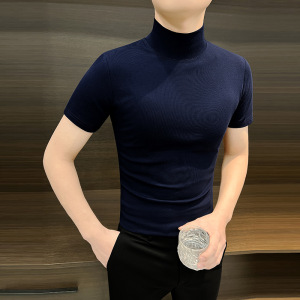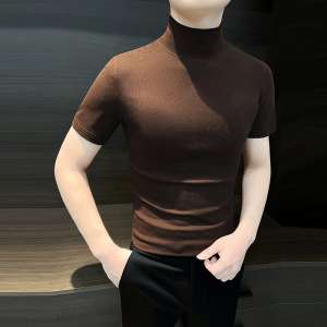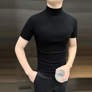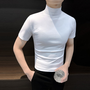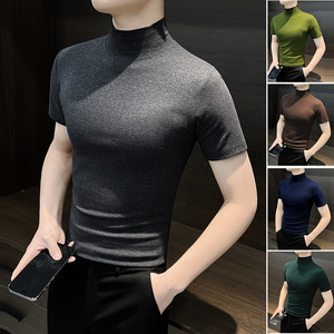 ハーフタートルネックメンズ Tシャツ半袖夏アイスシルク 2025 新しいトップタイトミッドカラーハーフスリーブスリムボトリングシャツ